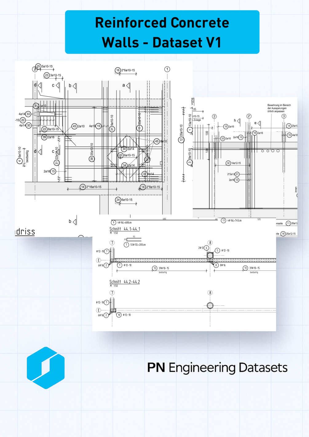 RC Walls Dataset V1 – 25 reinforced concrete wall drawings, png + pdf, structural engineering details