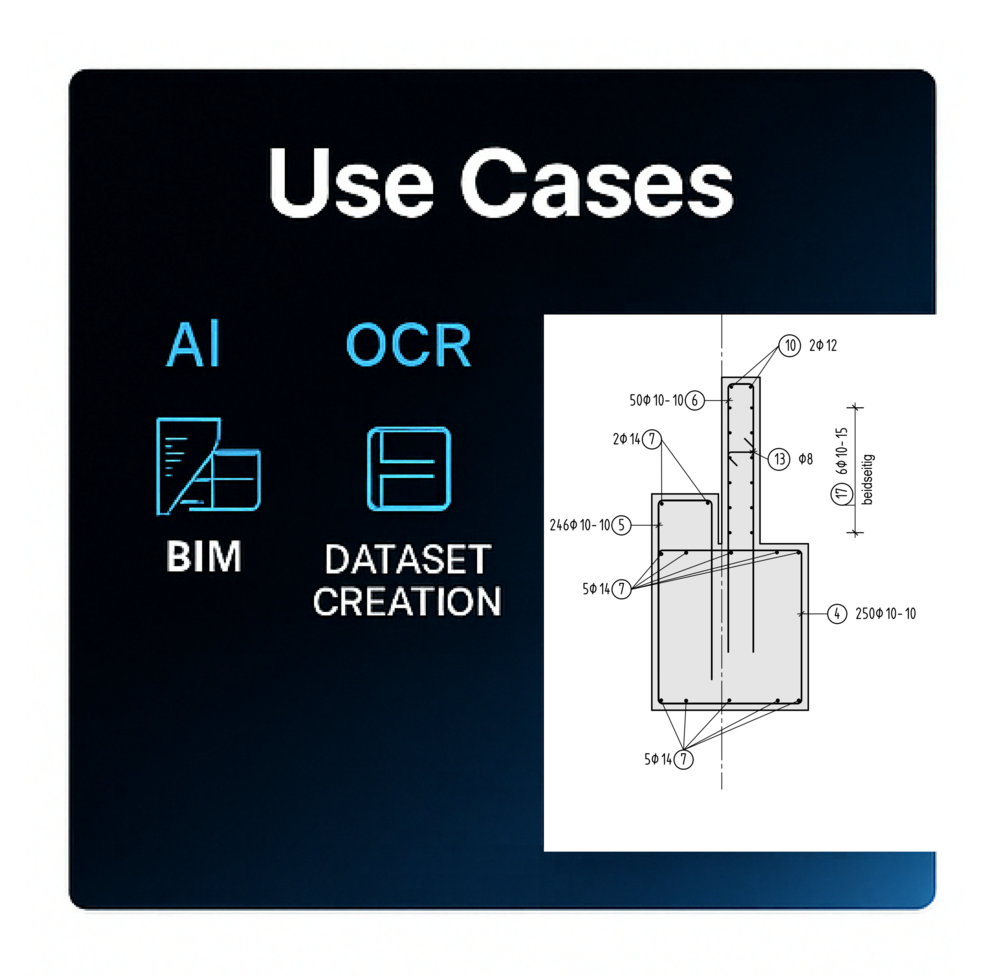 AI training, OCR models, BIM automation, research, software development, commercial use inside your own tools or models.